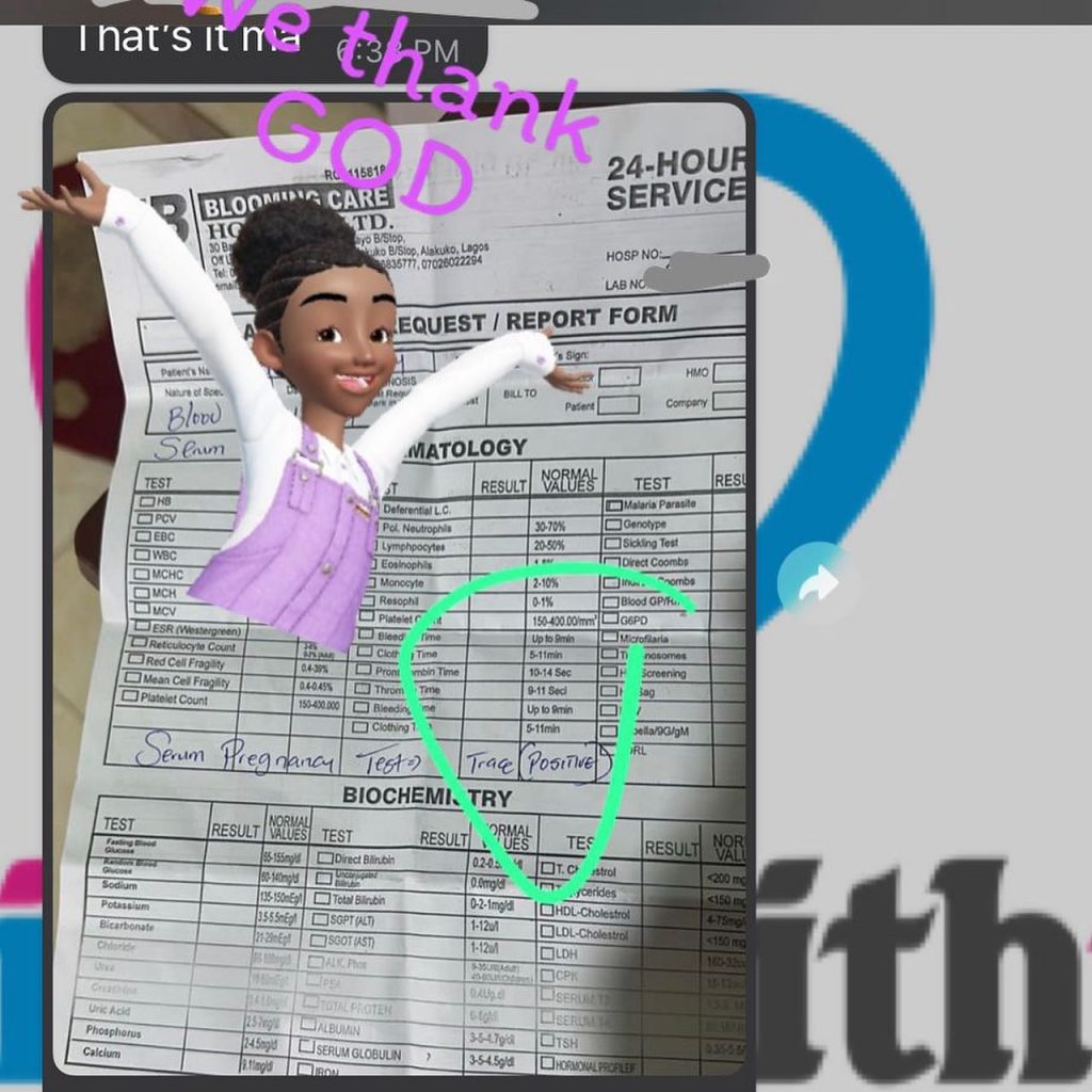 I went to the rest room, stood for like 15 mins thinking, went out and came back in and just decided to do it. Urinated in a small container, removed the pregnancy test strip from the case and put it in the container and ran outside. I didn’t want to look at it. I didn’t know if I was prepared to see it. I just didn’t want another disappointment.