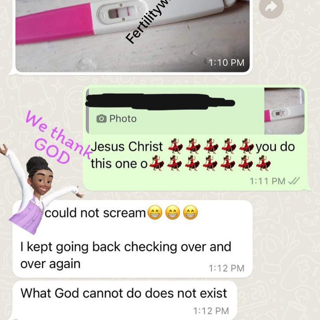 My husband saw me running outside and wondered what happened. He went to the bathroom to check and within few minutes he screamed. I immediately ran back to ask what happened, I saw my husband in a way I had not seen him before. He was crying, thanking God and was rolling on the floor. I couldn’t hold my tears. I didn’t even know how to behave based on all the past years. Several months of negative result. Ah, finally I will become a mother. I just couldn’t take it in as he showed me the double lines on the test strips.